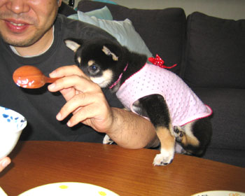 父犬(愉吉)と母犬(いろは)の子犬たらちゃん