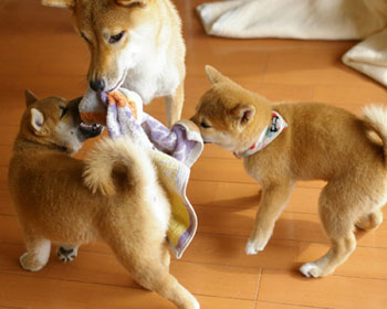 父犬(万頭)と母犬(おとめ)の子犬なぎちゃん